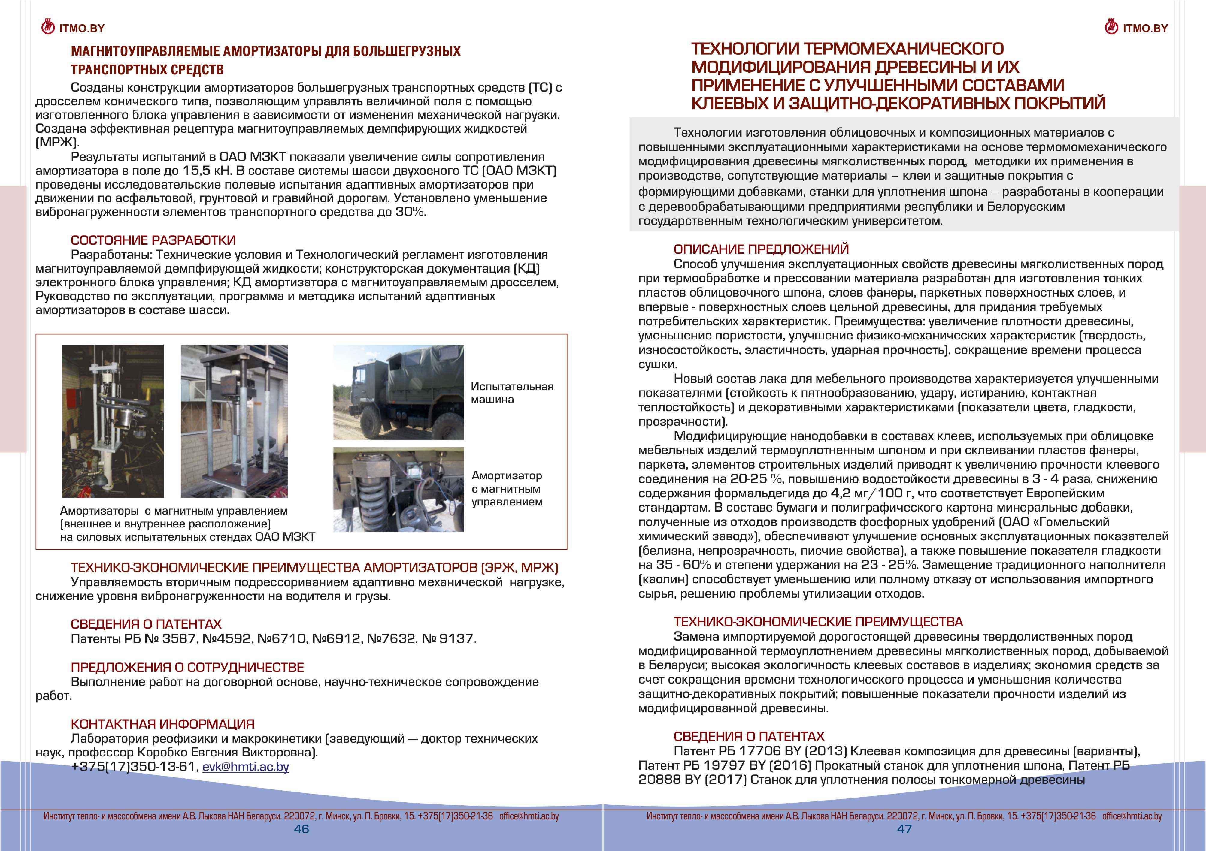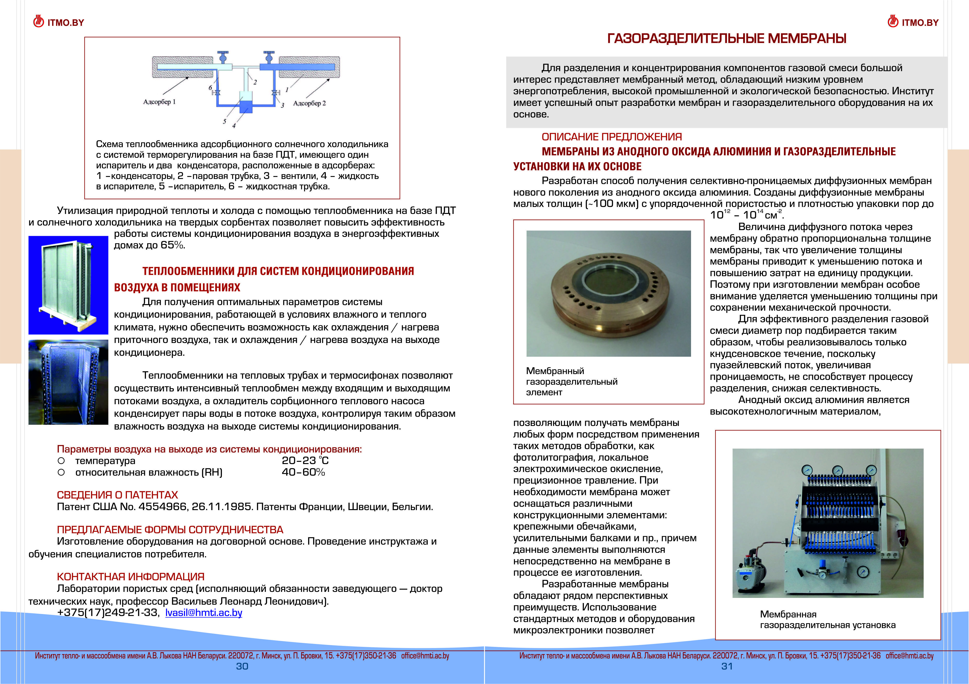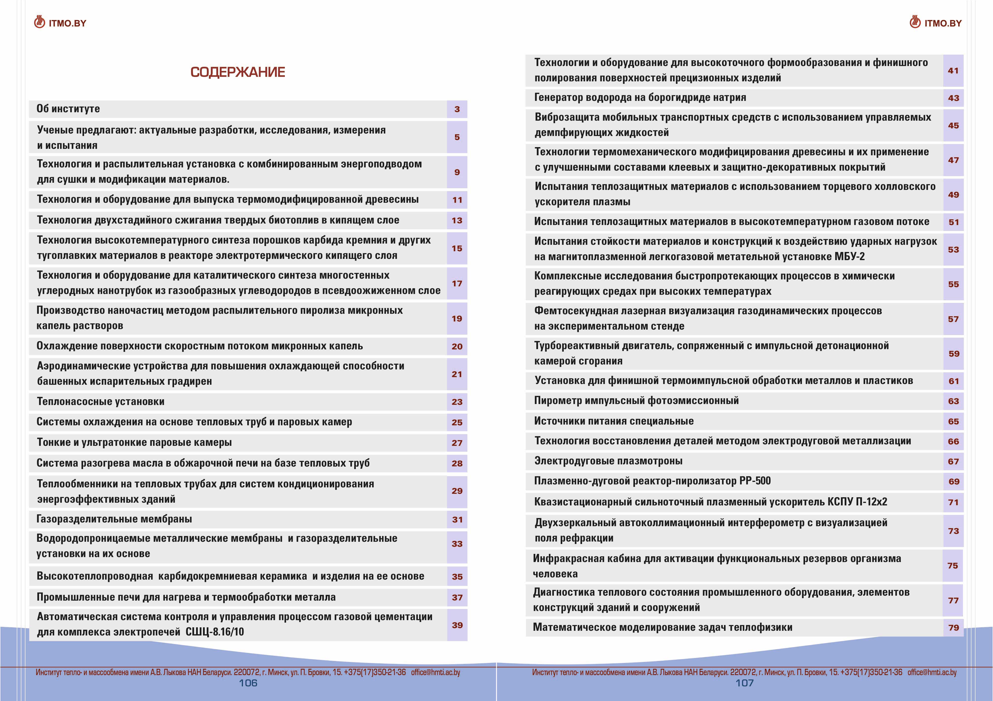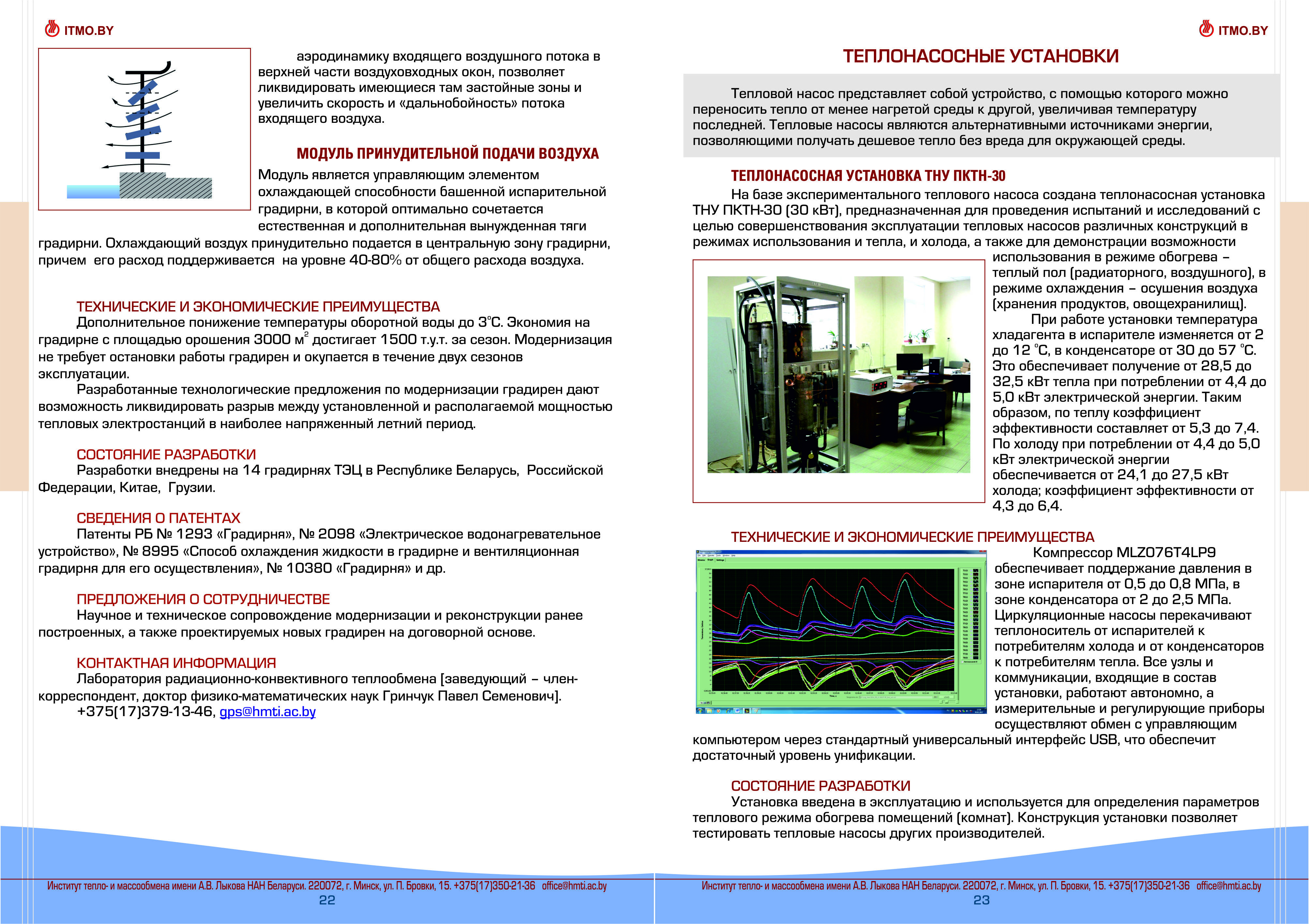 Каталог разработок, исследовний и испытаний Института тепло- и массообмена им. А.В. Лыкова Национальной академии наук Беларуси доступен для скачивания ниже: