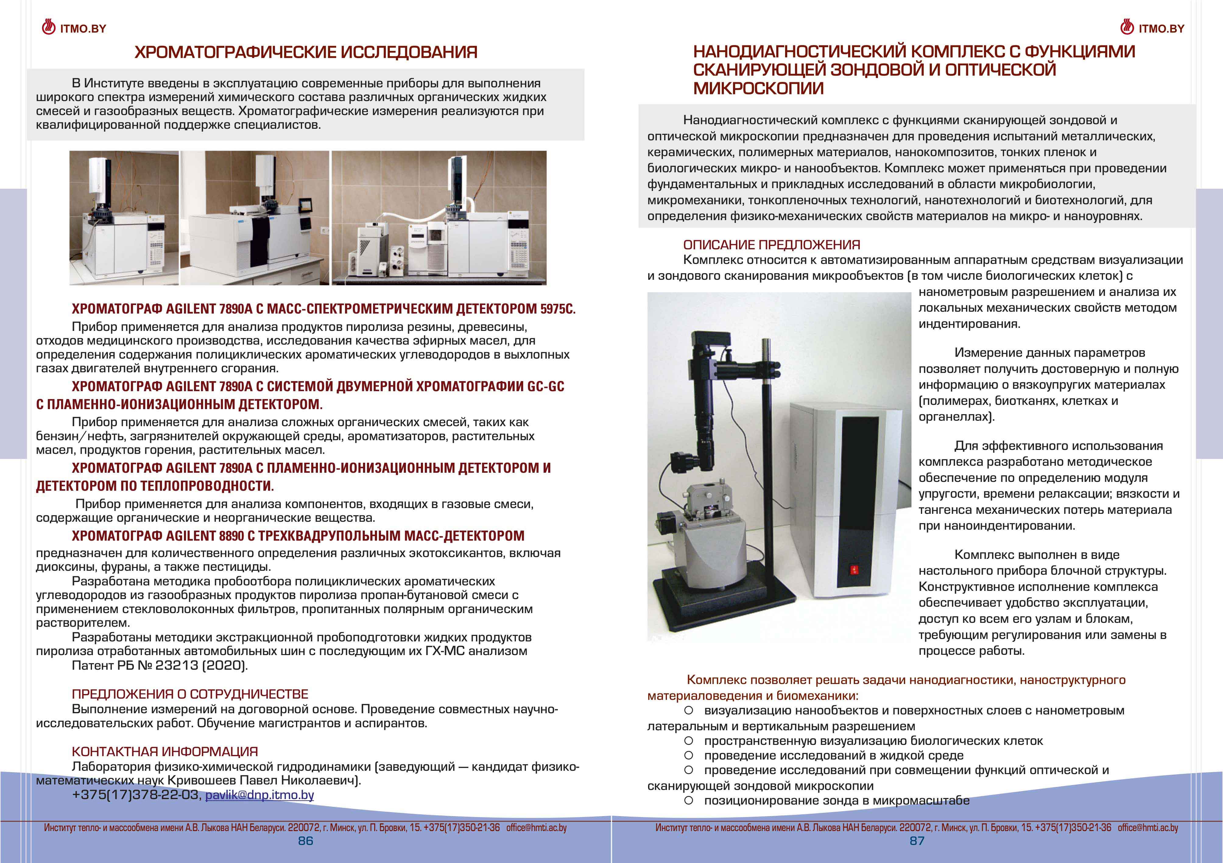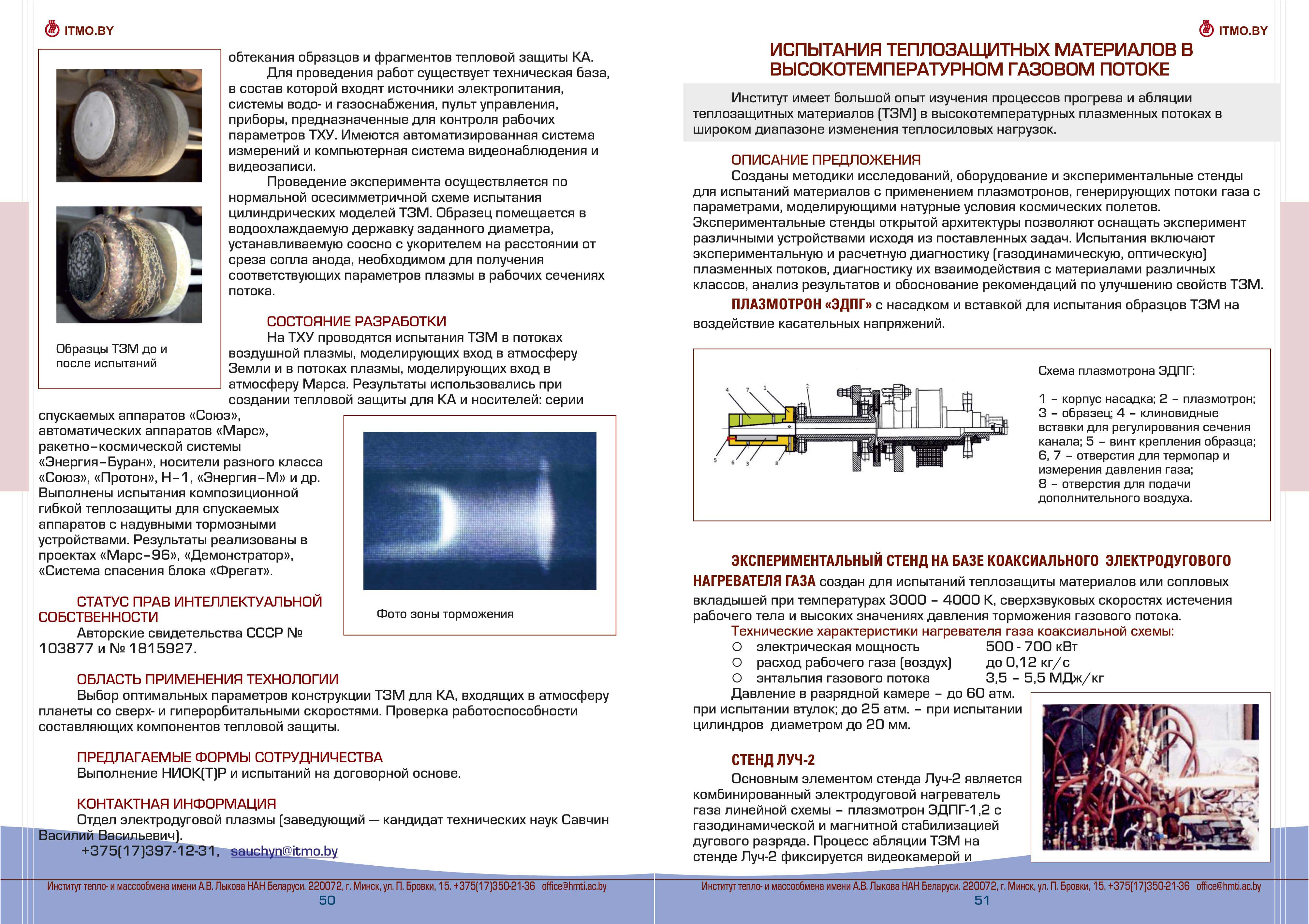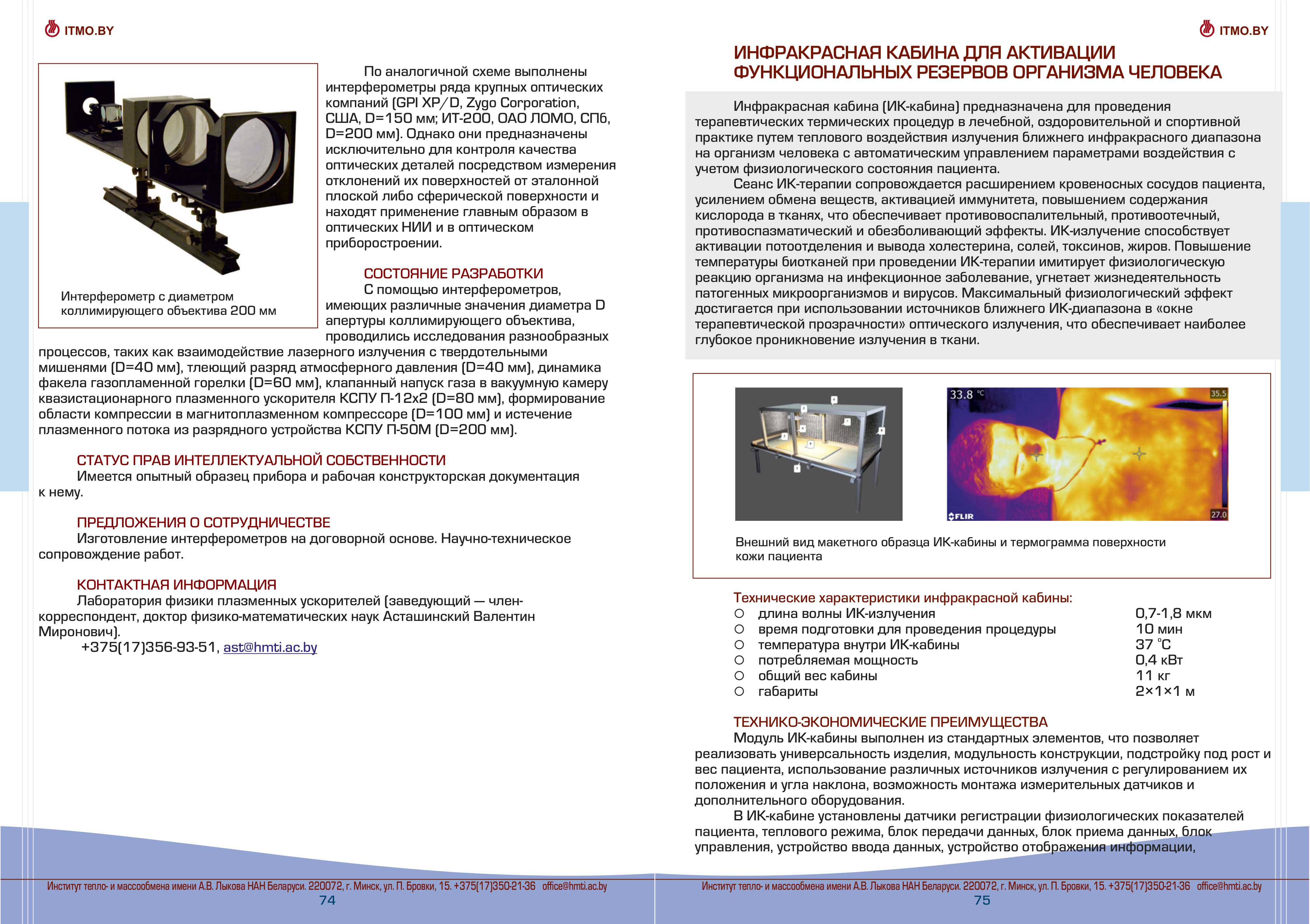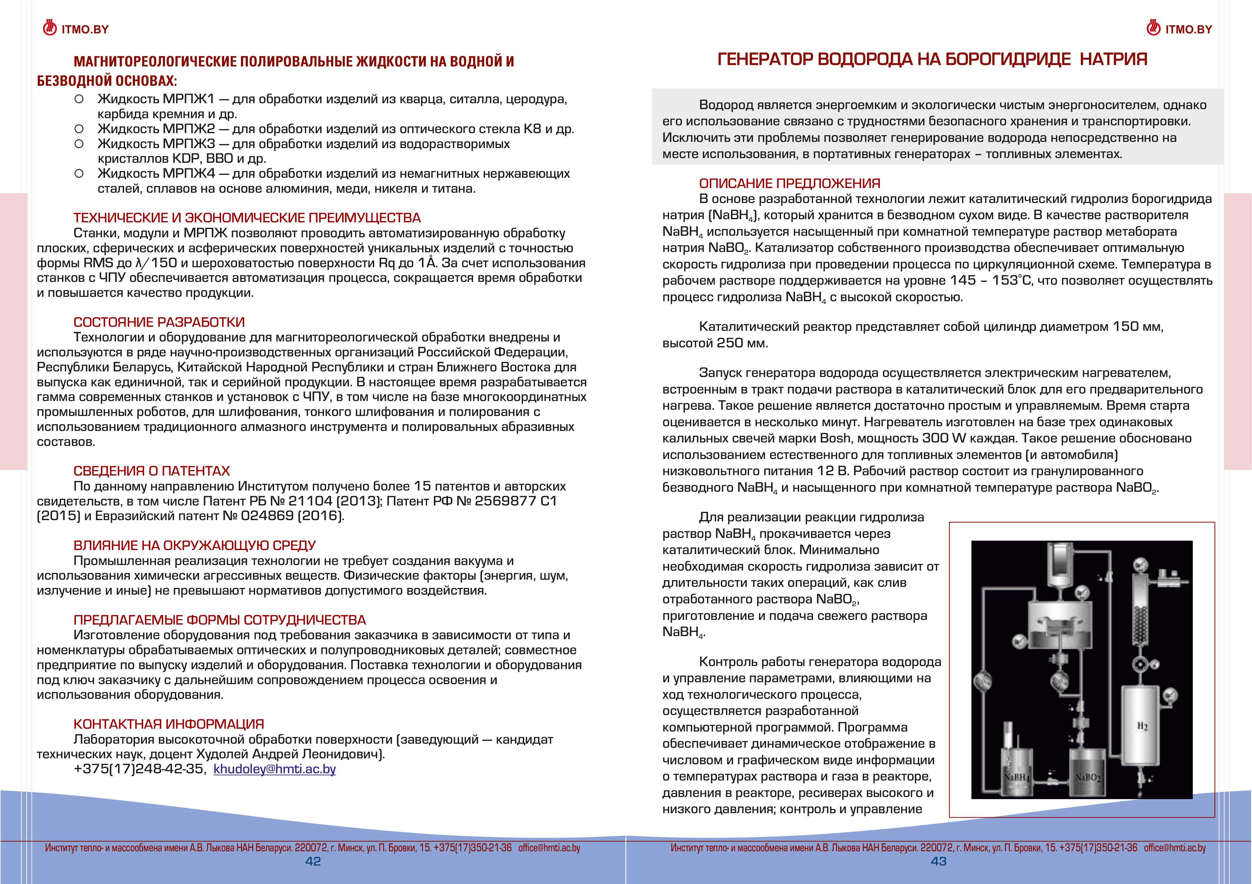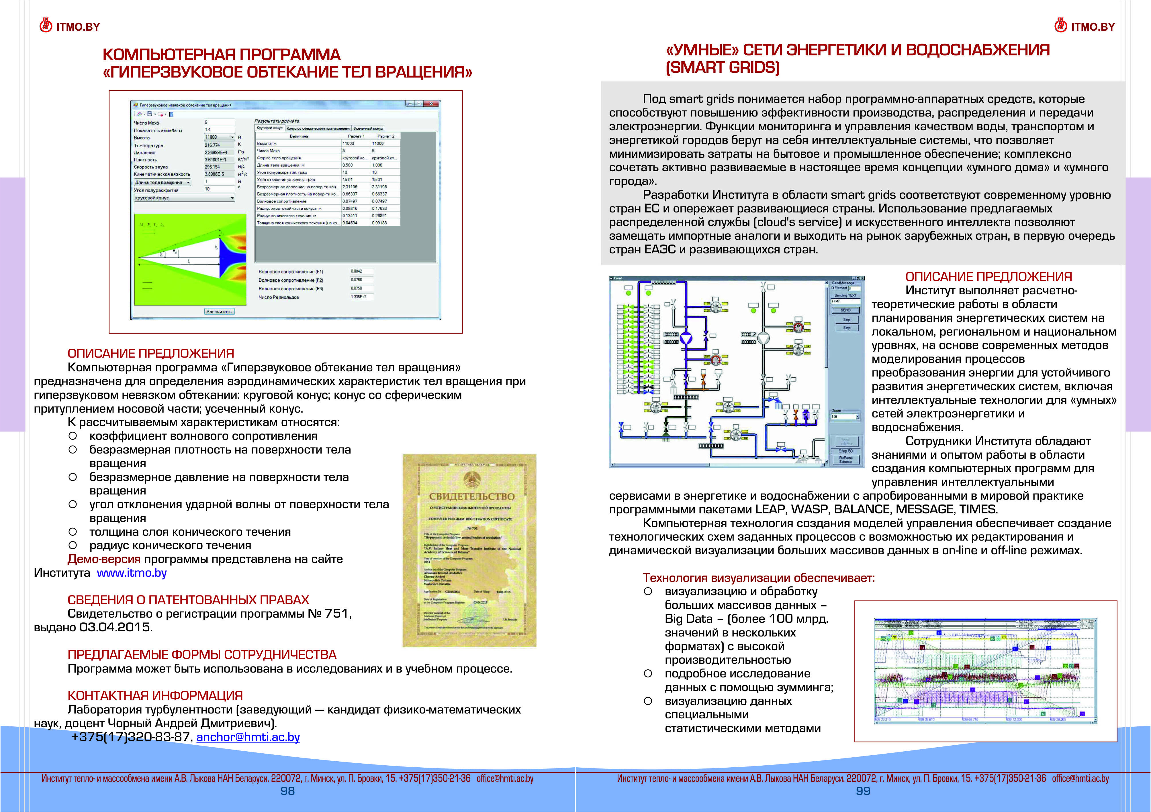 Каталог разработок, исследовний и испытаний Института тепло- и массообмена им. А.В. Лыкова Национальной академии наук Беларуси доступен для скачивания ниже: