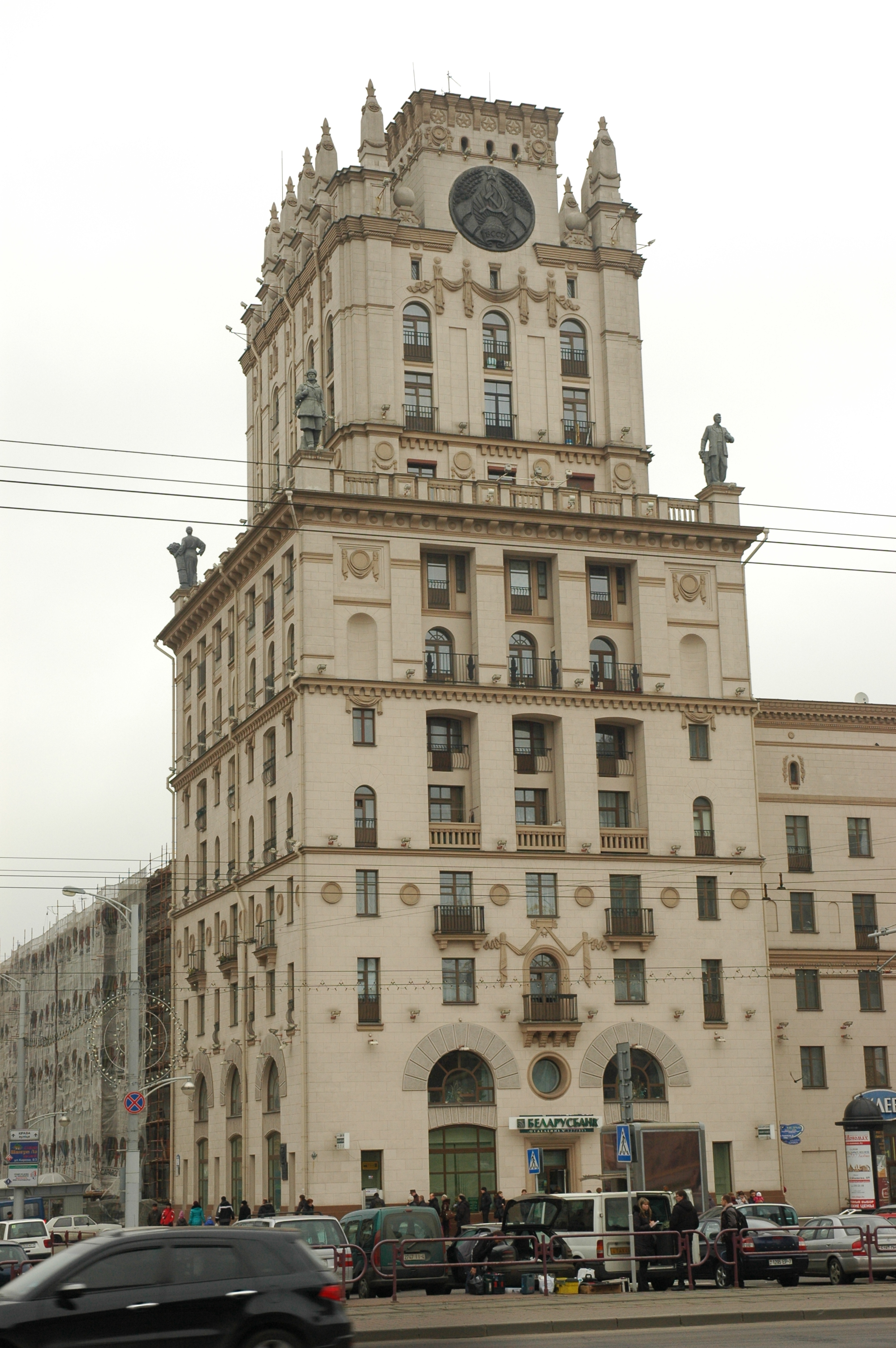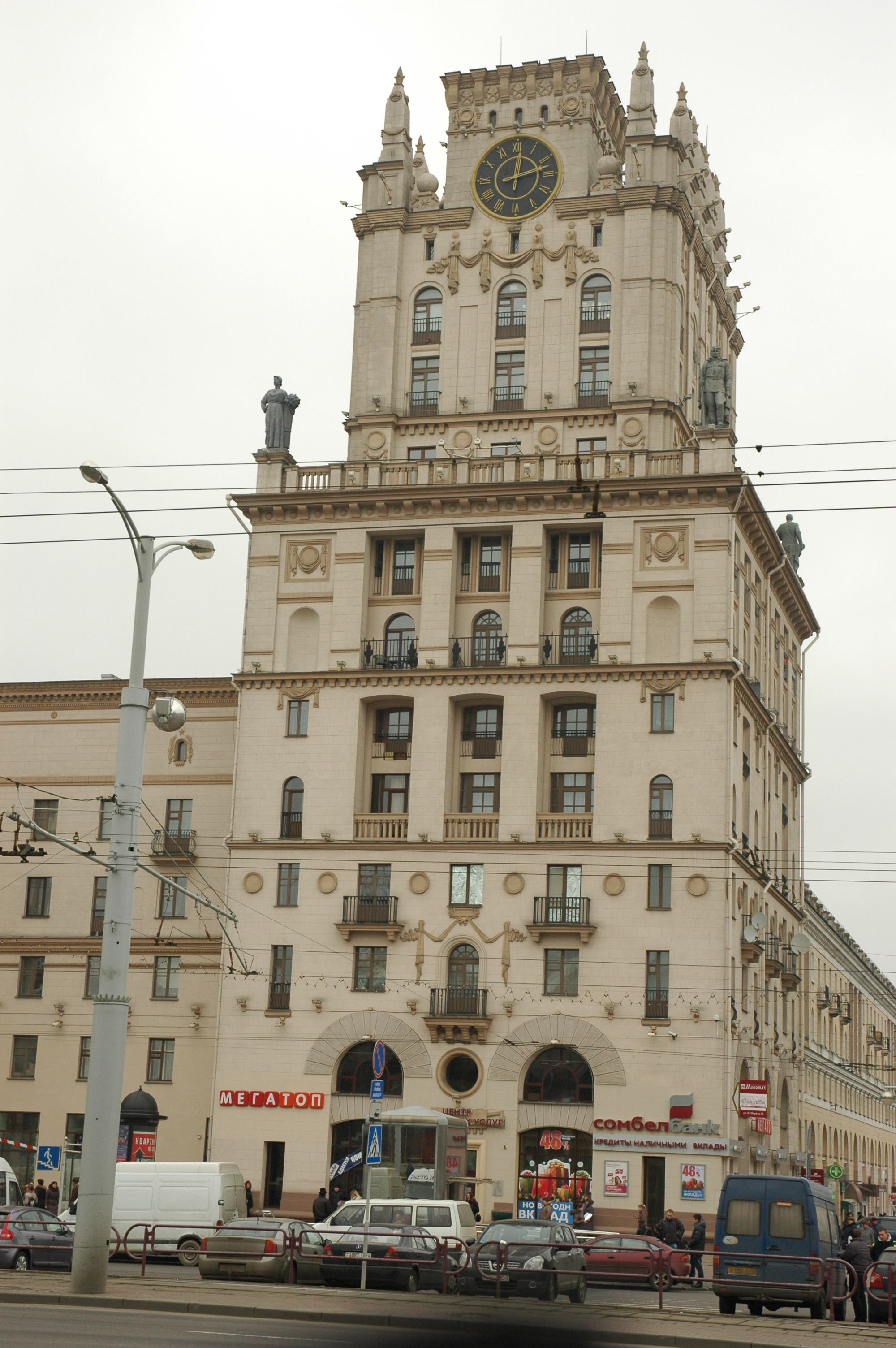 Ворота Минска находятся на привокзальной площади и представляют собой 11-этажные жилые дома. Башни построены в 1953 г в стиле сталинского классицизма. На одной из башен размещены самые большие в Беларуси часы, диаметр циферблата которых составляет 3,5 метра, а длина минутной стрелки – 1,69 метра.
